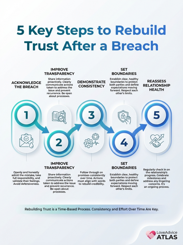 Rebuilding trust after a breach means creating new conditions where safety, honesty, and reliability are strong enough to hold both pain and hope. It does not mean pretending the breach never happened; it means building a different, more honest future on top of what you now know.